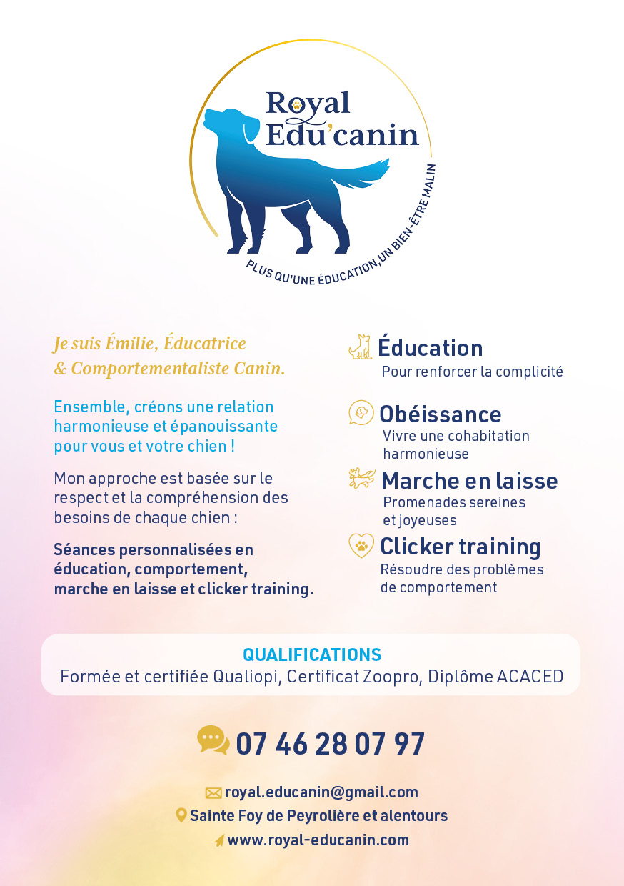 Mon approche est basée sur le respect et la compréhension des besoins de chaque chien.
